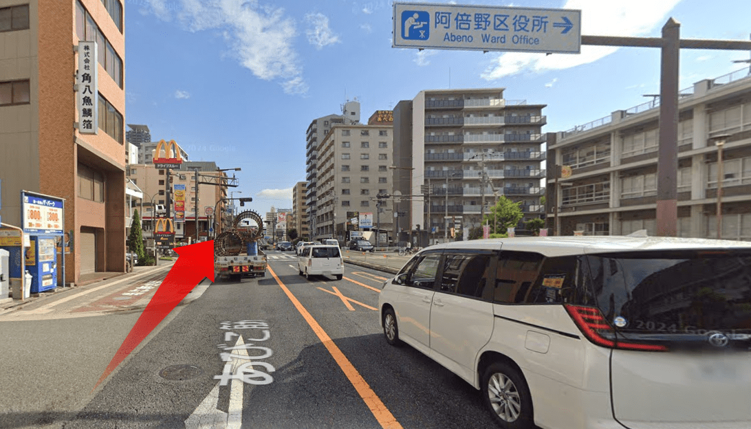 直進すると左手にマクドナルドが見えてきます。そのまま交差点を渡ってさらに直進します。